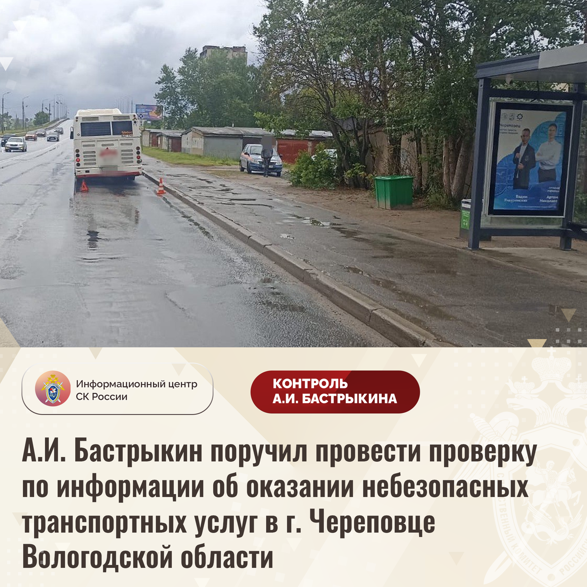 А.И. Бастрыкин поручил провести проверку по информации об оказании небезопасных транспортных услуг в г. Череповце Вологодской области