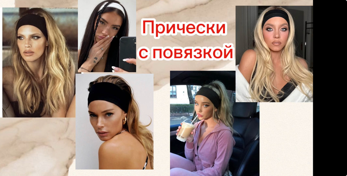 Наверняка, у многих есть такой аксессуар для волос, как повязка. Они бывают разных цветов, из разных материалов, даже теплые варианты для холодного времени года. Сегодня мы рассмотрим тонкий летний вариант. Такая повязка удобна для спорта, убирает волосы от лица. И просто, как стильный аксессуар в дополнение к вашим образам. Для создания первой прически из нашей подборки, зачешем все волосы наверх в высокий хвост. Завяжите хвост удобной резинкой. Оденьте на голову повязку. Разместите аксессуар на том уровне, как вам удобно и красиво. Прическа высокий хвост с повязкой готова! Стильно и просто, а главное без лишних усилий. Теперь давайте сделаем ещё одну прическу с повязкой-ободком. Я представлю вам эту прическу в двух вариантах: простом и сдержанном и более молодежном и дерзком. Для создания этой прически отделяем части волос у лица до ушей. А те волосы, что остались сзади, пока заколки, чтобы не мешали. Теперь заведем передние части волос назад и свяжем их вместе маленькой рези