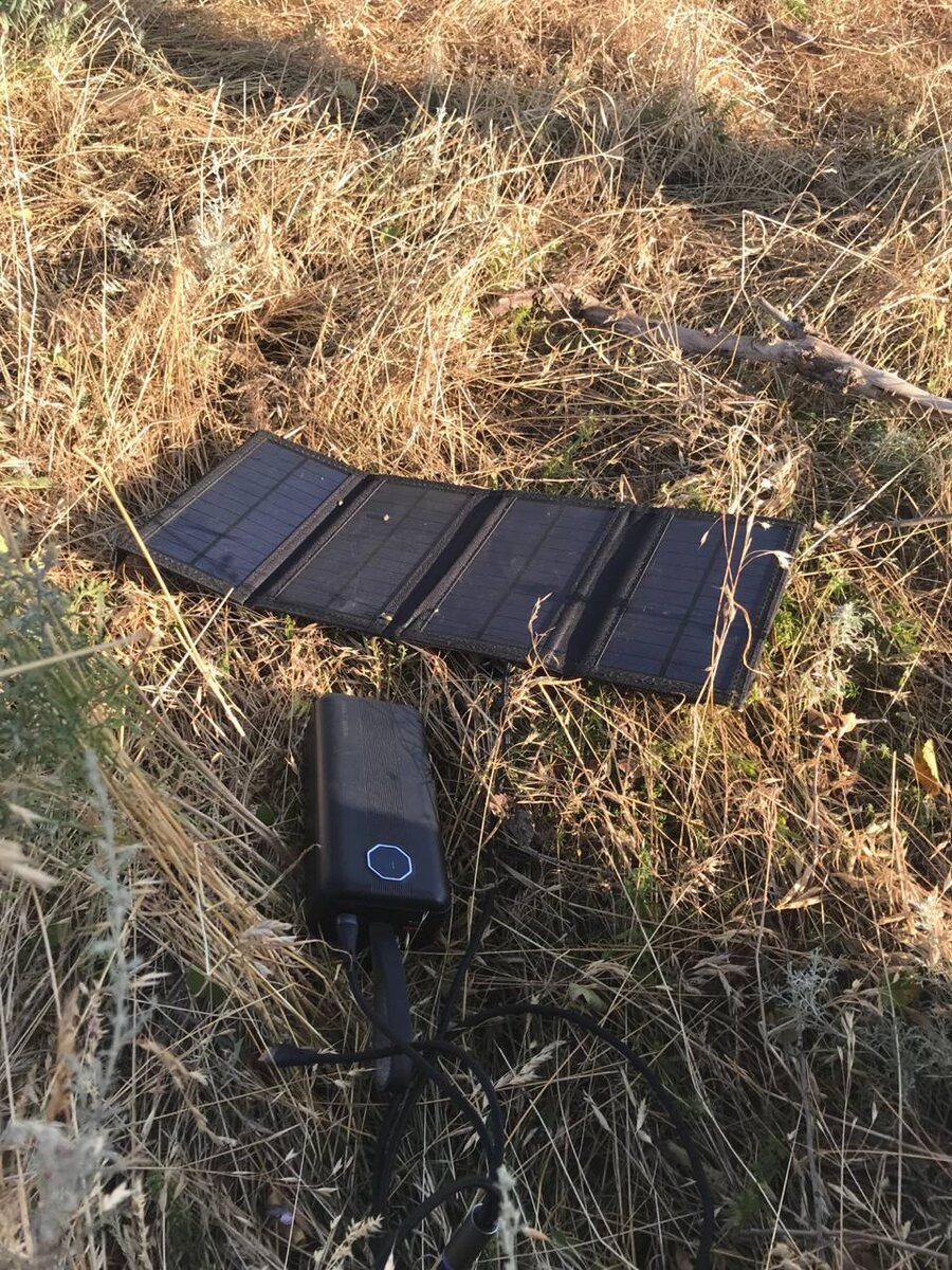 Для подзаряда гаджетов — пока единственная солнечная панель. На вторую сделан заказ в Мин-Воды — пришлют её лишь через несколько дней.