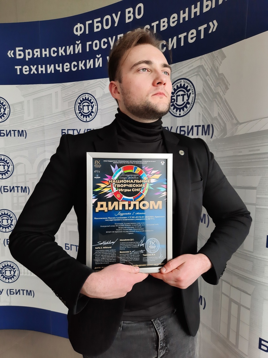 Максим Максименков, участник студенческого театра эстрадных миниатюр «ПУМ-ПУ-ROOM51» Брянского государственного технического университета (БГТУ), представлял в "творческих играх" родной ВУЗ. Нашим стэмовцем был заявлен конкурсный номер "Василий Тёркин. О награде." А.Т. Твардовского. Номинация: Художественное слово (стих). Возрастная категория: 21-25 лет.