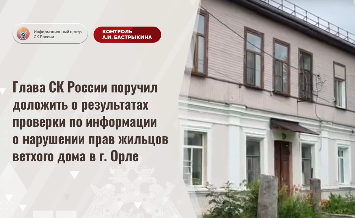Глава СК России поручил доложить о результатах проверки по информации о нарушении прав жильцов ветхого дома в г. Орле