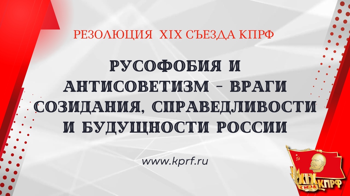 Коммунистическая партия Российской Федерации непримирима к любым формам национальной измены и идеологического подавления трудящихся. XIX съезд КПРФ решительно заявляет:
