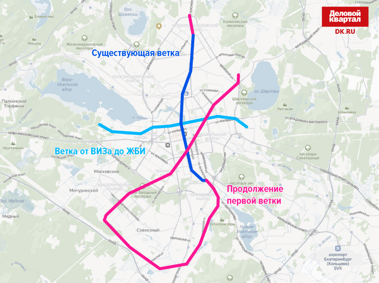 Вице-мэр Рустам Галямов объявил, что в августе-сентябре в мэрии Екатеринбурга утвердят корректировки в генплан, касающиеся метро. Информацию об этом DK.RU подтвердили в пресс-службе горадминистрации. В июне соответствующий документ прошел процедуру общественных слушаний. Согласно ему, существующую линию планируют продлить как на север, так и на юг. Южное направление предусматривает трассировку через Елизавет и Солнечный с выходом в Академический. Источник: Яндекс.Карты, графика: DK.RU Также документом предусмотрено строительство двух новых веток. Вторая линия должна связать станцию «Янтарная» (в районе ВИЗа) со станцией «Каменные палатки» (ЖБИ). Депо для этой линии запроектировано в районе озера Малый Шарташ, восточнее жилого района Комсомольский. Третья линия протянется от станции «Академическая» до станции «Шарташская». Варианты размещения депо для нее рассматриваются в районе железнодорожной станции «Аппаратная» или южнее Академического. Напомним, что подробности данного проекта опу