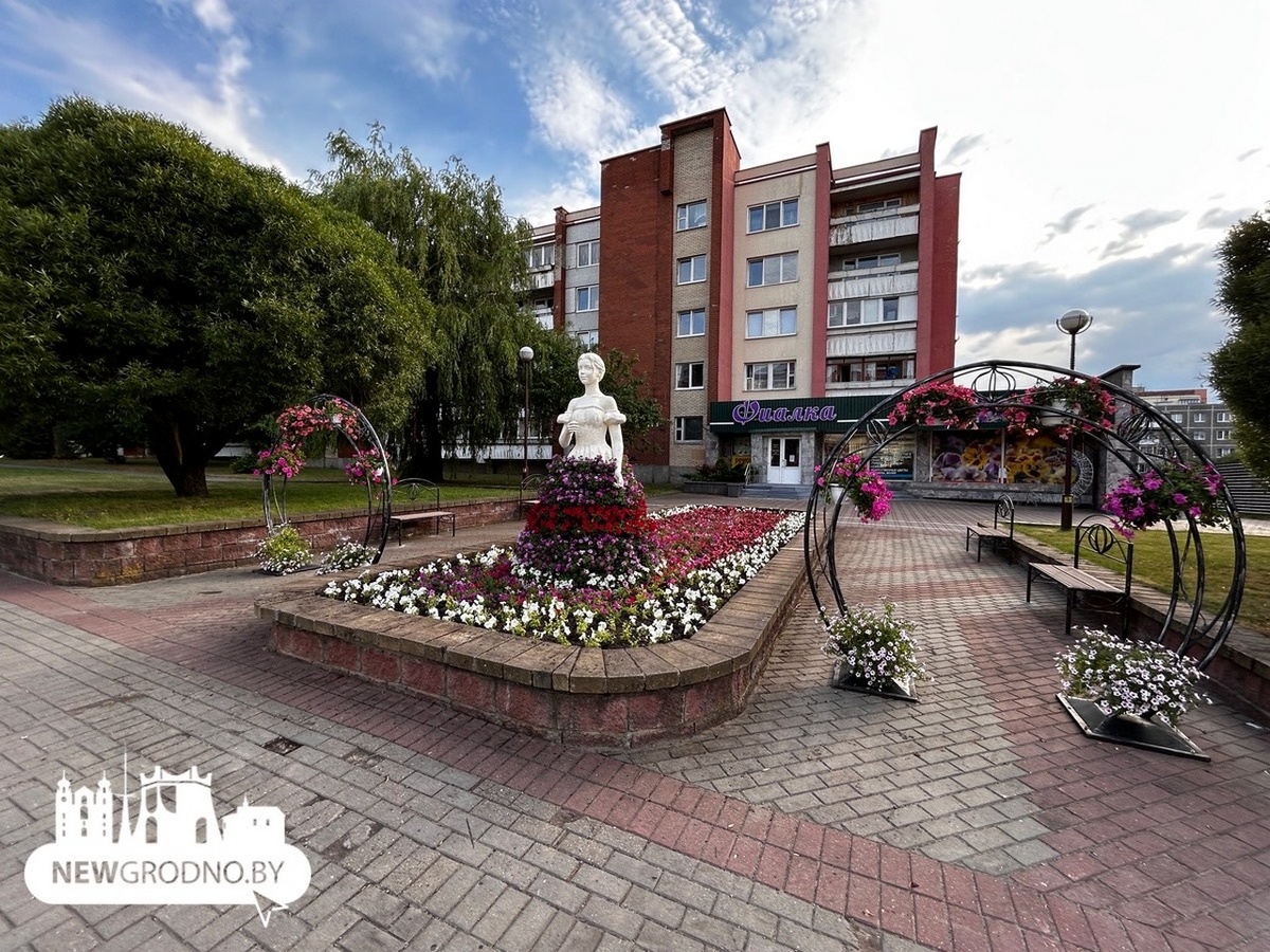 Кстати, сотрудники «Гроднозеленстроя» украсили не только парки. Скульптура девушки с юбкой из цветов появилось на клумбе по улице Горького. Говорят, что это Фиалка – богиня цветов. Теперь понятно, почему она появилась рядом с одноименным магазином.