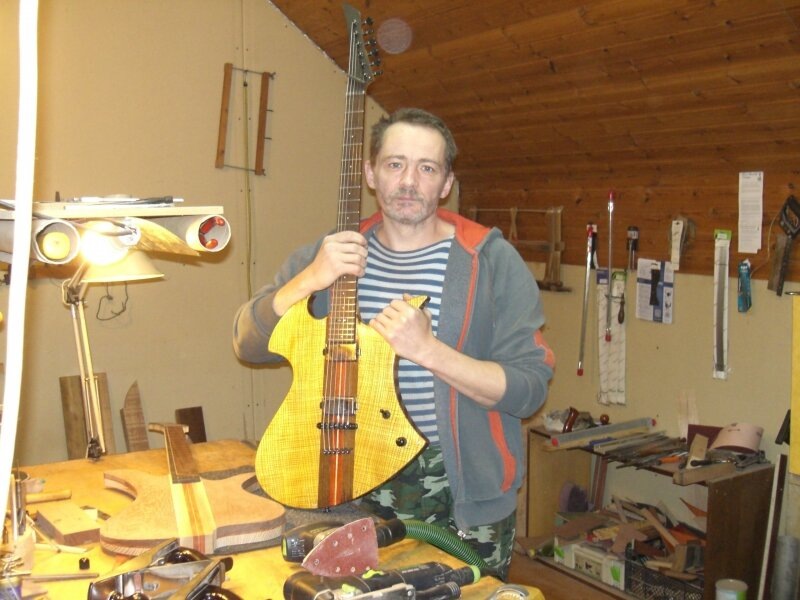 После рассказа об изготовителях гуслей и волынок из Сибири мы отправились в подмосковный Серпухов, где Александр Лучко изготавливает более привычный инструмент – электрогитары. Он объяснил нам, почему классические семиструнные потеряли свою актуальность, чем ему импонирует бренд Festool и кем сегодня наиболее востребованы басы (конечно, металлистами). В 1985 году у Лучко сломалась гитара – сам он, по его словам, «чуть-чуть бренчал в компаниях». После починки инструмента он вдруг задумал создавать подобные сам. Пять лет поисков наставника, год обучения, и в 1991 году Александр стал самостоятельным мастером. Начинал с классики: первые десять лет умелец изготавливал более трудоемкие варианты с нейлоновыми струнами и фламенко, а после полностью перешел на создание их электронных братьев. «Последние лет десять у меня вообще не было заказов на классическую гитару. Сейчас нет ни спроса, ни предложения – очень мало и клиентов, и мастеров. Наверное, дело в том, что раньше люди зарабатывали игро