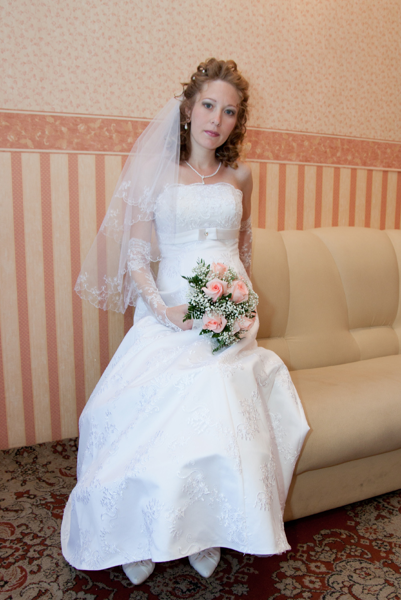 В продолжении истории нашей свадьбы. Почему сегодня опять эта тема? Да всё просто: свадьбу же гуляют два дня обычно. Поэтому сегодня так.😉 Наступает, значит, день Икс. Время нашего бракосочетания назначено на 11 часов с копейками, сейчас уже и не помню точное время. А это значит, что для того чтобы мне навести красоту, сделать прическу и накраситься, нужно встать утром очень рано. В 7 часов должна была приехать парикмахер к нам домой, а мамина хорошая знакомая, которая мне делала макияж, часа на 2 позже, часов так в 9. Сначала задерживается наш парикмахер не на долго, где-то на полчаса, но тем не менее. Она знает, что волос у меня на голове много, и чтобы сделать мне прическу, нужно изрядно повозиться. Ну и что вы думаете, она закончила крутить мои волосы в 10:30, это целых 3 часа ушло на мою прическу. Мамина знакомая всё это время ждала, пока меня закрутят. На макияж у неё оставалось всего ничего времени, за полчаса она меня накрасила, за 10 минут я втиснулась со своим 32-х нед