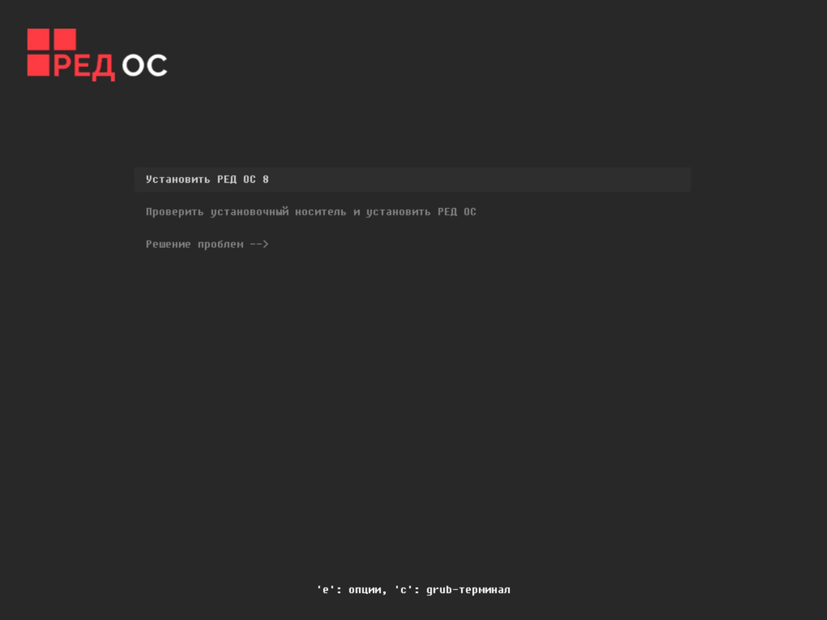 Рассмотрим установку РЕД ОС 8 Сервер с установочного носителя.