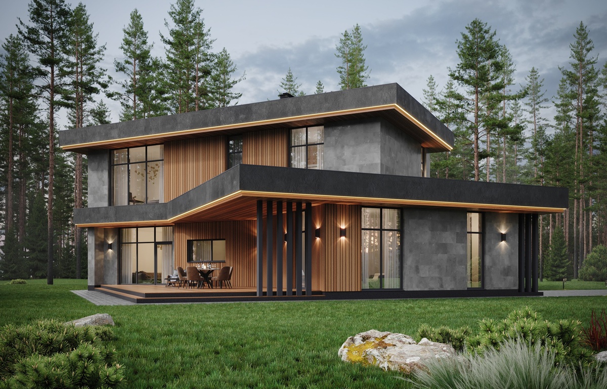 Новый индивидуальный проект. В нашем каталоге появился новый проект ГБ-332, разработанный по индивидуальному заказу для строительства в коттеджном поселке Дубровка. И мы уже начали его реализацию! Общая площадь дома - 206,33 м2 Жилая площадь дома - 96,99 м2 Особенности проекта: 1. Проект выполнен в стиле Хай-тек и имеет линейную подсветку карнизных свесов, придающую особый шарм дому. 2. Фасады дома будут выполнены из гибкой керамики в сочетании с планкеном из термососны и керамогранитом. 3. Наш архитектор учел особенности участка для максимального сохранения полезной площади на нем, именно поэтому дом имеет особую форму и расположен под углом 140 градусов. 4. Парадный вход включает отдельно стоящий гараж на 2 машины и крыльцо, объединенные под одной крышей, что создает эффектный и удобный вход в дом. Узнать больше о проекте: ГБ-332 #Дубровка_monolithouse