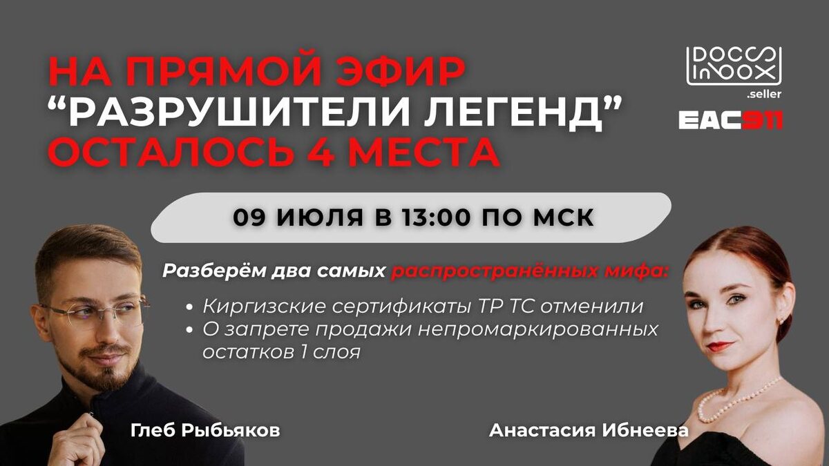 Через 2 часа (в 13:00 по МСК) стартует наш долгожданный прямой эфир «РАЗРУШИТЕЛИ ЛЕГЕНД: мифы сертификации и маркировки», и если вы ещё не с нами — сейчас самое время зарегистрироваться.