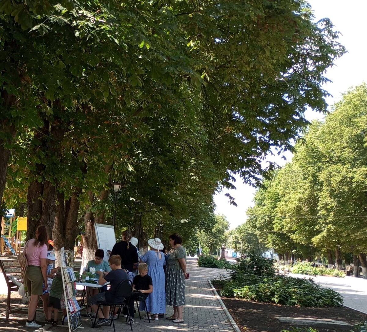 Под сенью каштанов городского сквера Центральная библиотека Волновахи ДНР провела для жителей творческий мастер-класс «Ромашка — символ семьи».