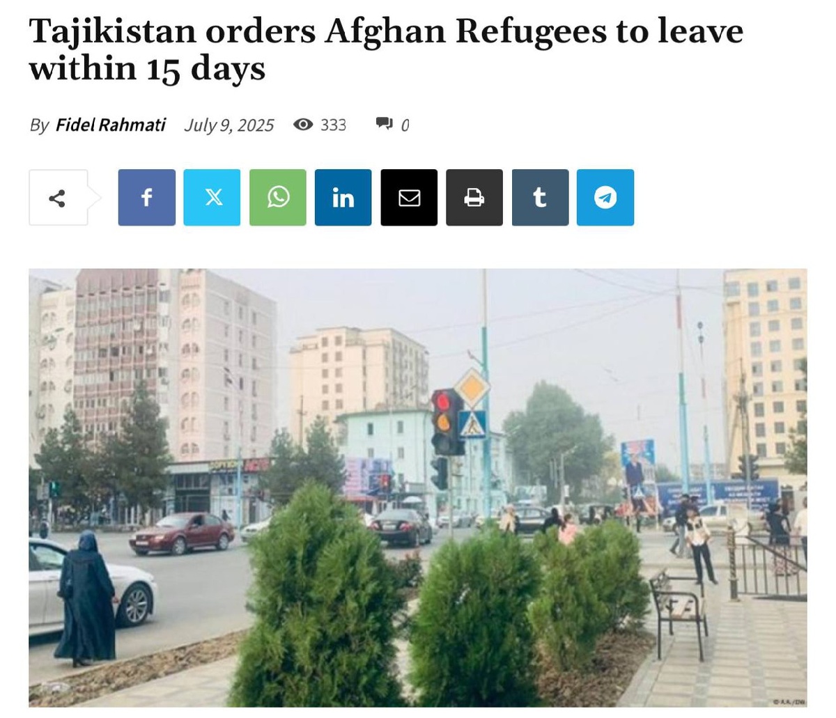 По данным издания, власти Таджикистана уже начали принудительную депортацию беженцев, а распоряжение о 15-дневном сроке вызвало повсеместный страх и чувство неопределённости среди афганцев.