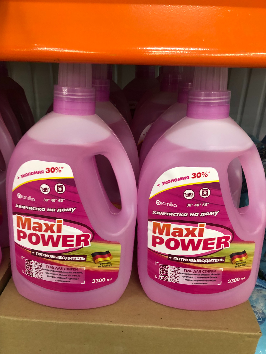 Всем огромный привет! Сегодня я подготовила для вас обзор из магазина Светофор. В продаже шикарный ассортимент. Много интересных новинок. Привезли новый гель для стирки Aromika Maxi Power Color. Он с пятновыводителем. Это высококонцентрированное средство. Универсальная стирка для белого и цветного белья, также подходит для верхней одежды и для стирки пуховиков. Подходит для машинной и ручной стирки. Справляется с более чем 100 видами пятен. Сохраняет яркость и насыщенность цветов. Объем 3,3 л. Цена 519 рублей. Изготовитель Казахстан.