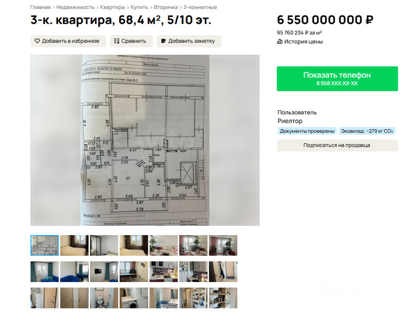Судя по истории цены, риелтор, разместивший объявление, ошибся в стоимости. В апреле квартира стоила 6,6 млн рублей, а уже в июне плата резко выросла до 6,5 миллиарда рублей.
