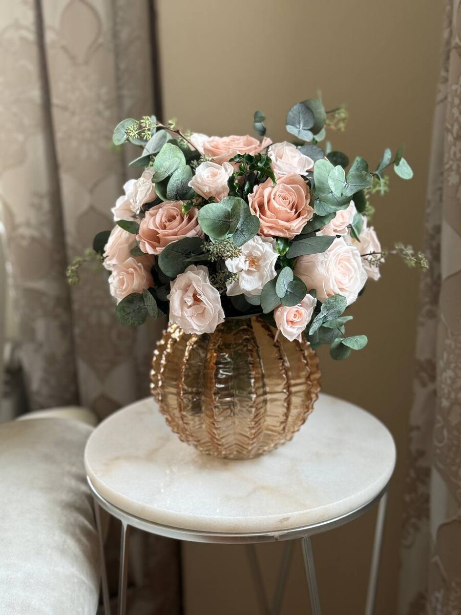 ⚜️Букет из роз с эвкалиптом в вазе «Caramel cream»