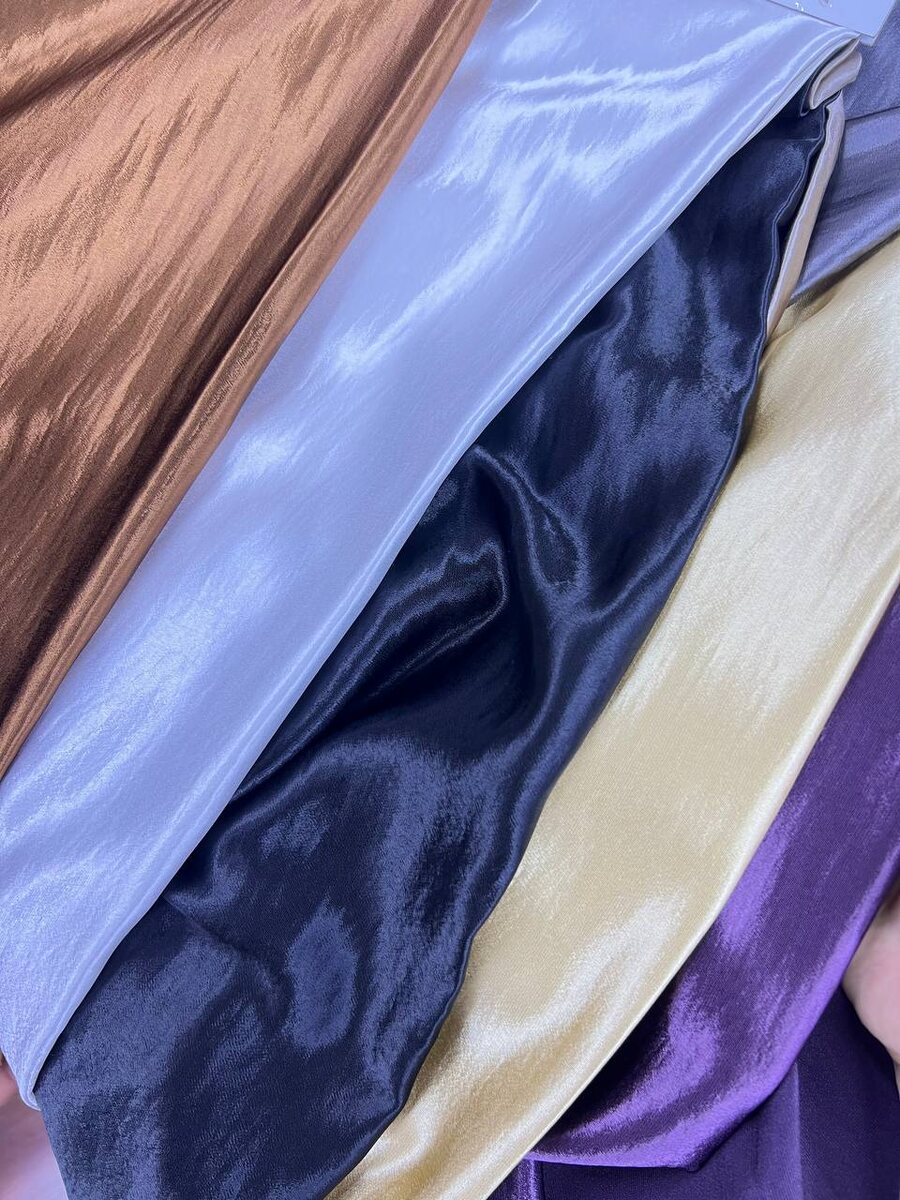 Мраморный атлас Актуальное наличие цветов Не просвечивает , не требует подклада. Очень мягкая , нежная ткань, красиво переливается. Ширина 1.53см Рулон 50м +- Оптом от 1 рулона 3.8$/м