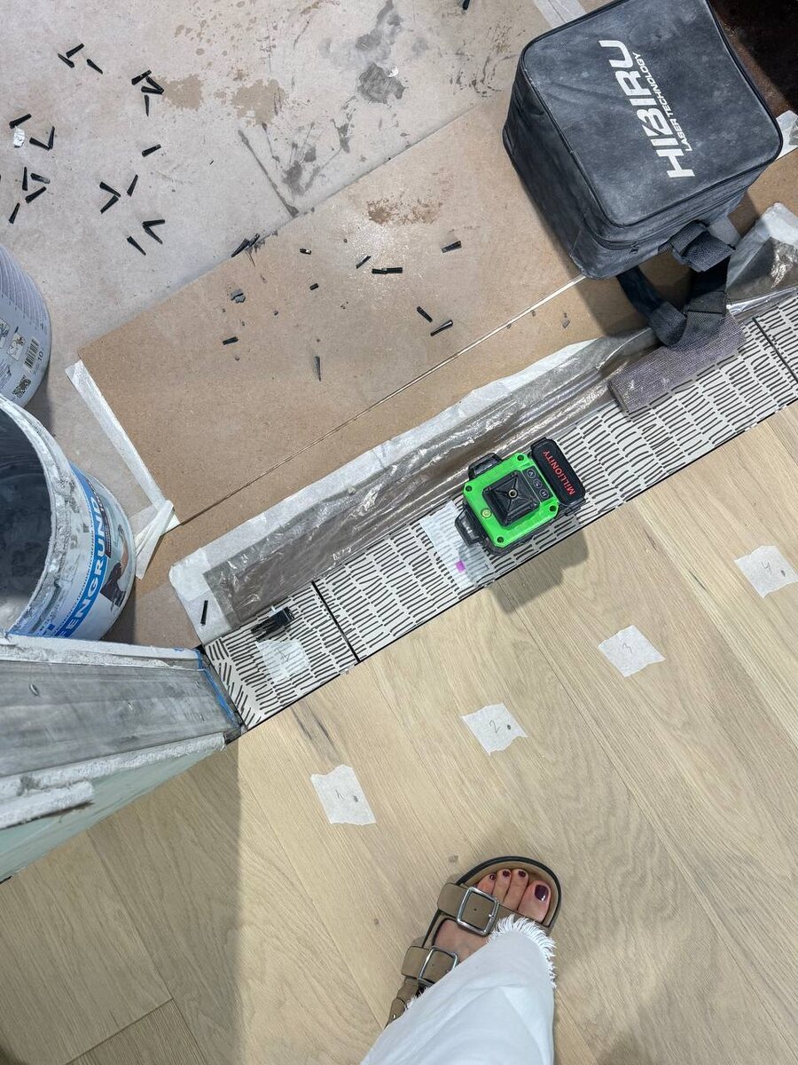 На стройке сейчас такой этап, когда все очень активно будет двигаться и вырисовываться. 🔹Весь керамогранит на полу уже лежит 🔹Идёт укладка инженерной доски 🔹Идут последние согласования по всей заказной мебели в проект 🔹В пятницу будем выбирать все оставшиеся материалы 🔹На следующей неделе приедут устанавливать двери