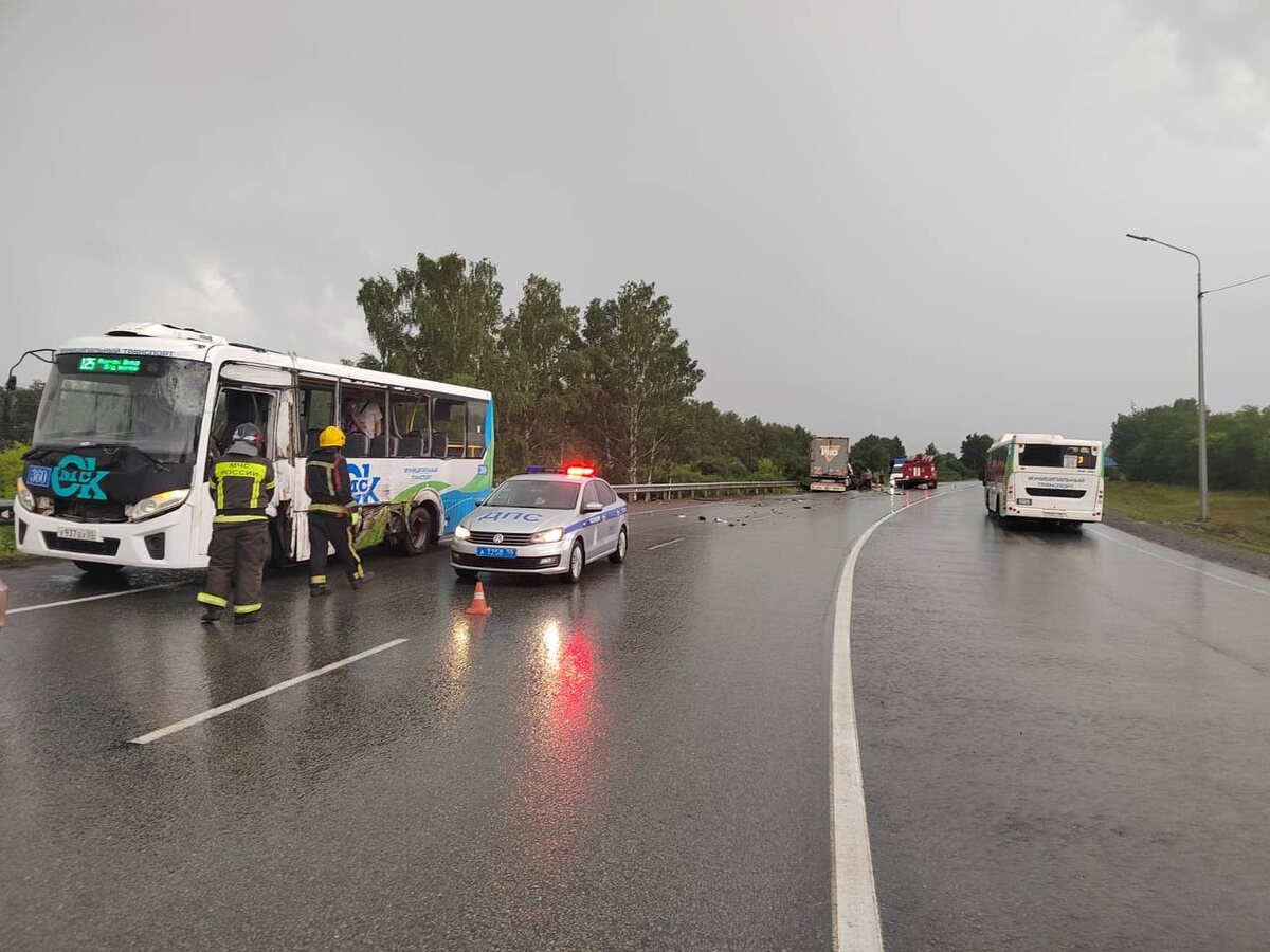 В Омске водитель большегруза врезался в автобус — пострадало 6 человек