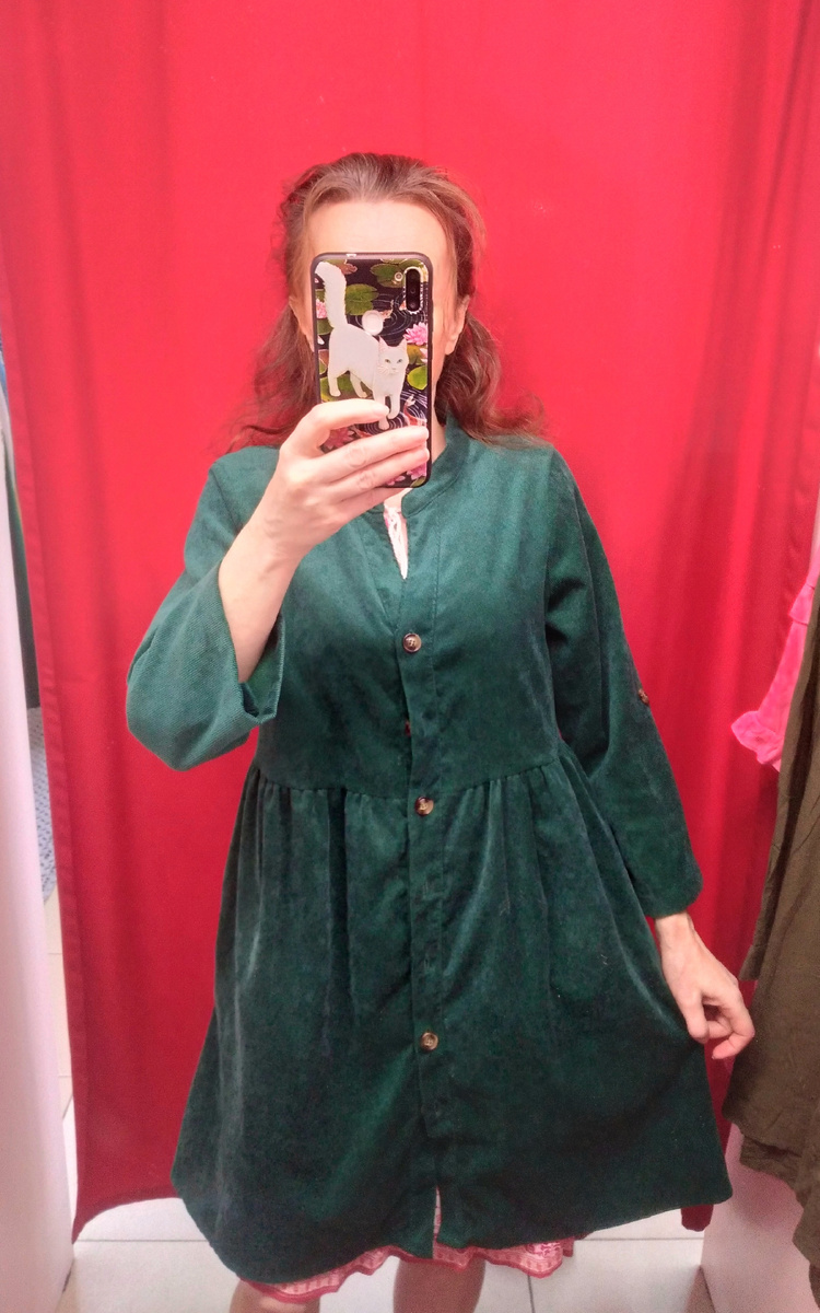 Платье цвета хаки. К нему просто просится нечто оранжевого цвета, может пояс)