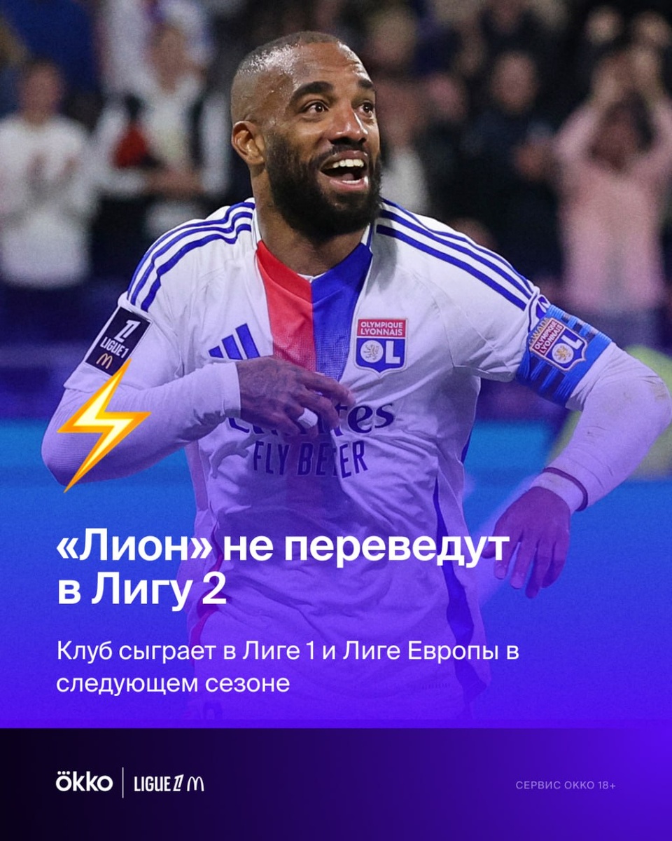 ⚡️⚽ «Лион» не будут понижать в Лигу 2. В следующем сезоне клуб сыграет в высшей лиге и Лиге Европы.