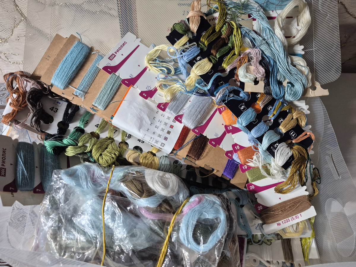 Что от длины нити напрямую зависит вышивальный релакс. Это как от удобного рабочего места. Ведь чертовски удобно когда все под рукой?! Я давно делаю нить меньше 30 см в два сложения. И крестики быстрей вышиваются (потому что ход руки меньше) и нить не тончится. Да и сама кладка крестиков не надоедает. А то если небо вышивать и нить бесконечная, то бомбить после 100 крестиков, а так мне нитки хватает на 45 крестиков и глаз не дергается и сплю спокойно. А после 45 чувствую можно ещё, то вновь небо вышиваю, а нет, то беру другой цвет.