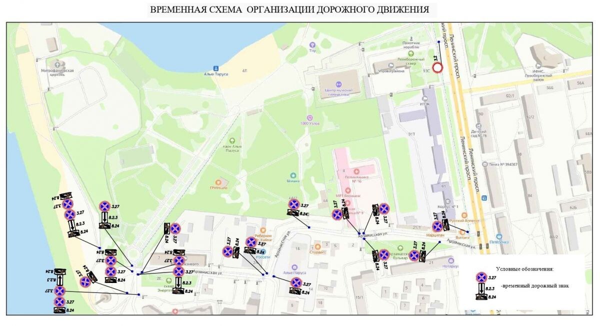 В связи с проведением праздничного мероприятия на территории парка «Алые паруса» запретят парковку возле парка с 18:00 11 июля до 21:00 12 июля. Об этом сообщили в городском управлении дорожного хозяйства. Такие ограничения будут действовать от Ленинского проспекта до дома № 8Б на улице МОПРа. Также в субботу, 12 июля, перекроют движение возле дома № 93 по Ленинскому проспекту.