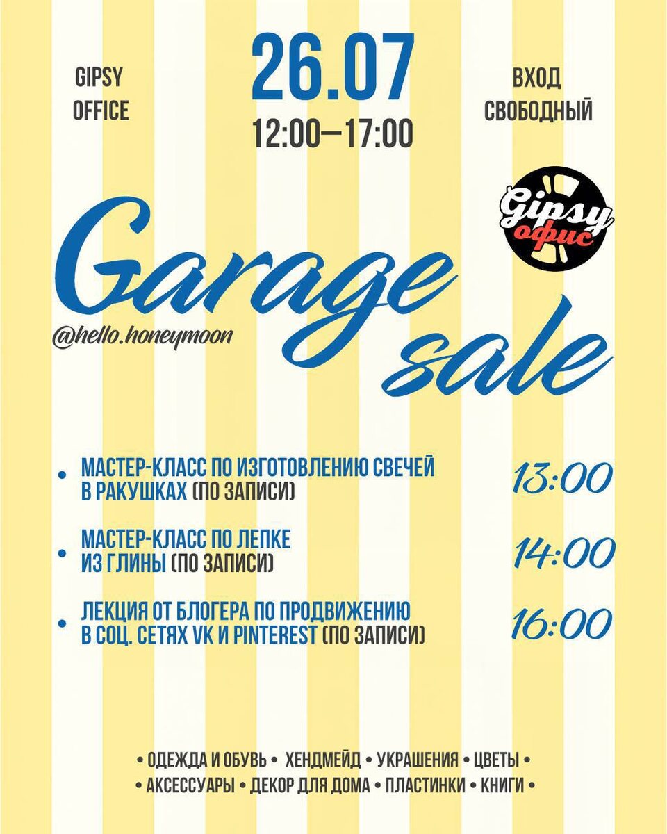 GARAGE SALE 🌼 🗓️ 26 июля 12:00-17:00 📍 Gipsyoffice, Гончарова 30, стр 1 В развлекательной программе: ▪️13:00 | МК по изготовлению свечей в ракушках 🏷️ 500₽ ▪️14:00 | Лепка из глины: предметы для декора 🏷️ 1500₽ ▪️16:00 | Лекция от блогера по продвижению бренда в соцсетях VK и Pinterest 🏷️ бесплатно Запись на события у @oyanilina ❕Сейчас открыт набор участников: •одежда и обувь •хендмейд •украшения •аксессуары •декор для дома •пластинки •книги •цветы Все подробности участия уточняйте у @oyanilina ✨ 🏷️ вход на само мероприятие свободный #26июля25