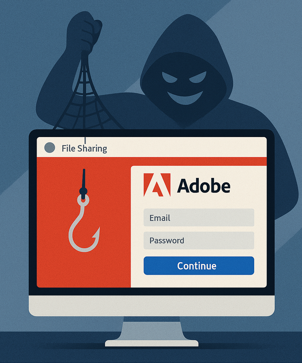 Секрет в том, что сама картинка — ловушка. Картинка выглядит как скан документа или инструкций, но если кликнуть на неё (а большинство кликает, пытаясь увеличить), вы попадаете не на документ, а на поддельный сайт, который выглядит как официальная страница файлообменника Adobe. Всё до деталей: логотип, фирменные цвета, доверие, вызывающее ассоциации с чем-то «родным» для офисного работника.