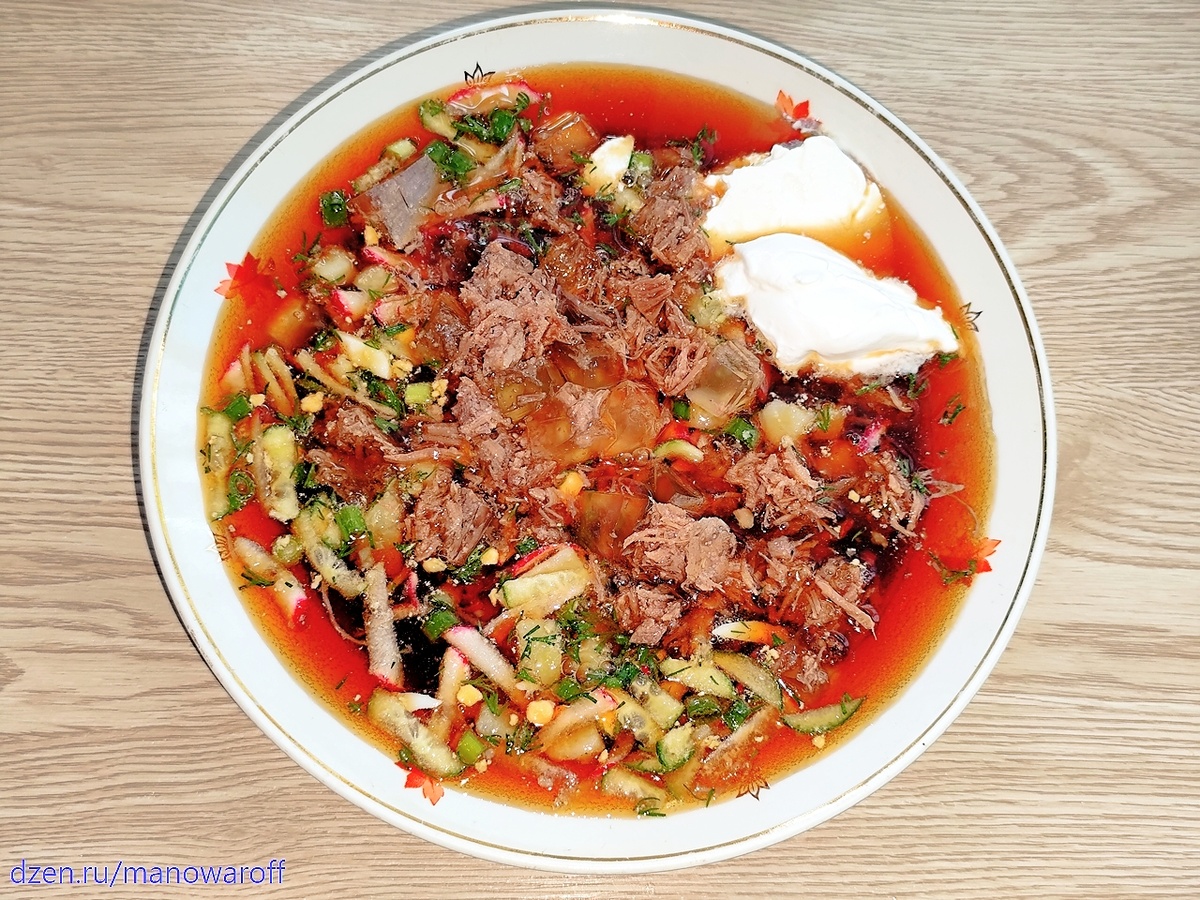 Да-да, сегодня будем готовить вот этакое извращение. Рецепт мне попался в интернете, автор заявляет, что это очень вкусно (поэтому я решил проверить это утверждение) и вообще, это старинное русское блюдо. Насчет последнего утверждения меня стали терзать смутные сомнения, так что я сунул нос в известную книгу Молоховец, где, разумеется, рецепта такой окрошки не обнаружил. Да и вообще, если включить логику - когда на Руси готовили окрошку? Правильно, летом, когда пошли огурцы. Ну либо весной, когда выросла редиска и зелень, а огурцы использовались соленые. А холодец когда делали? Поздней осенью, когда забивали скотину на мясо. Так что окрошка подружиться с холодцом никак не могла. Так что рецепт явно современный. Впрочем, какая разница. Будем пробовать. Для приготовления четырех порций нам понадобится: *Если нет корня хрена, то можно использовать магазинный тертый хрен. Яйца с картошкой (в мундире) отвариваем, охлаждаем, чистим, нарезаем небольшим кубиком и кладем в кастрюльку. Огурцы с