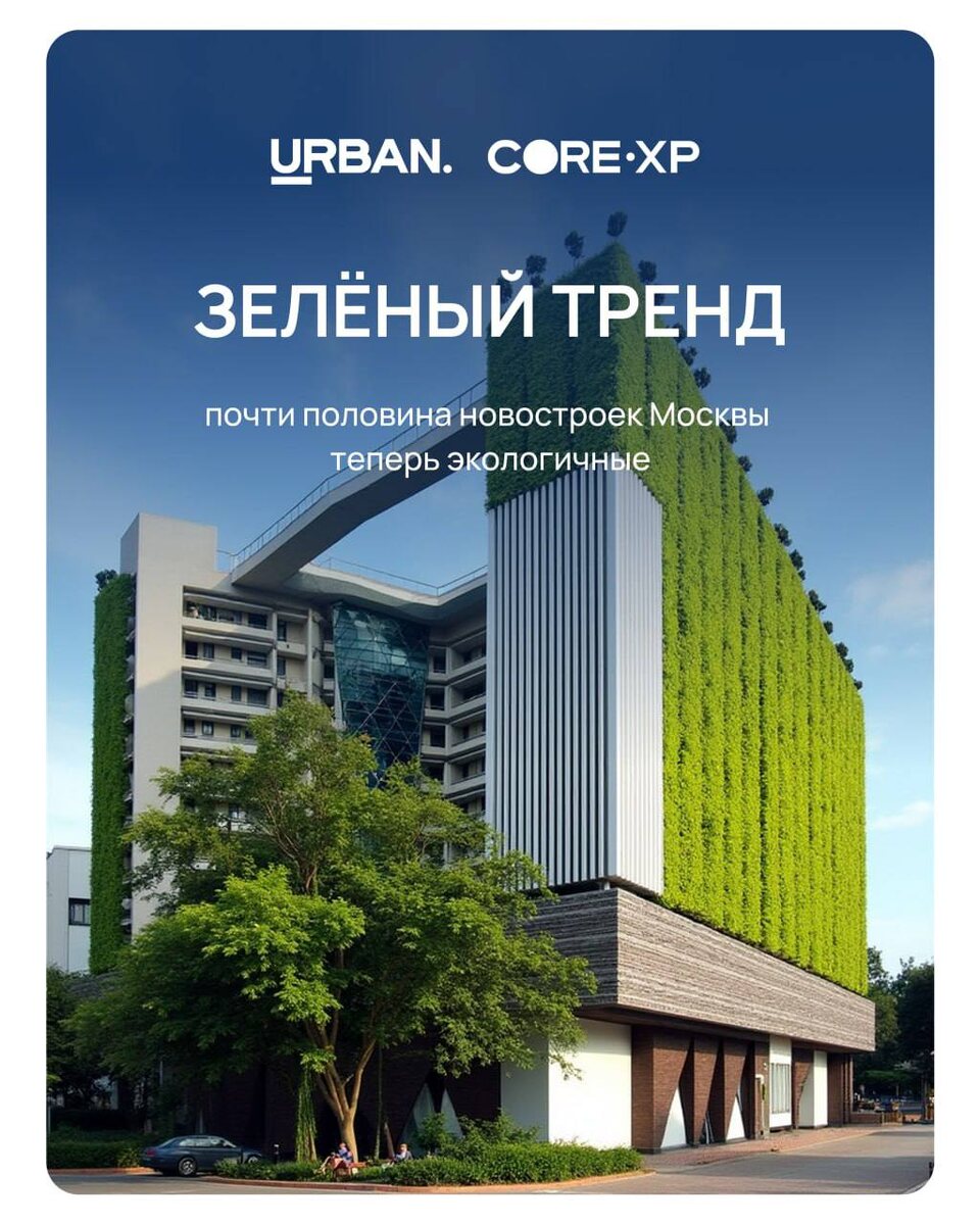 Эко-бум в Москве: 44% новостроек теперь "зелёные" Для сравнения: за последние пять лет эта цифра составляла в среднем 28% (по данным дом.рф). Рост почти в 1,5 раза — тренд на экологичное строительство набирает обороты. Застройщики и девелоперы находятся в поиске эффективных решений и технологий с точки зрения «зеленого» строительства, не меньший интерес вызывают возможности оптимизировать площадь озеленения и получения преференций по проектному финансированию. 🟢CORE.XP является партнером номинации "Зеленое строительство" URBAN Awards. Компания занимает лидирующие позиции в консалтинге и управлении инвестициями в недвижимости в России и СНГ и помогает внедрять "зелёные" решения на всех этапах реализации жилых проектов. 🟢Плюсы для всех: • Инвесторы вкладываются с меньшими рисками • Девелоперы получают больший спрос на здания • Государство способствует экологизации недвижимости Критерии оценки "зеленых" проектов доступны в требованиях номинации "Зеленое строительство". 💚Ваш прое