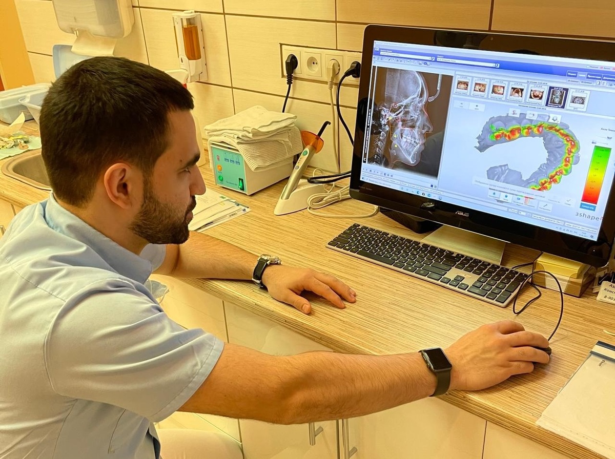 Ни одно грамотное ортодонтическое лечение невозможно без комплексной диагностики. Основываясь на ее данных, мы ортодонты проводим анализ, учитываем нюансы и составляем план лечения. Что это за диагностические данные? Итак, модели получают в результате сканирования зубных рядов с помощью 3D – сканера для получения цифровых копий или снятия слепков с последующей отливкой гипсовых копий. Модели верхнего и нижнего зубных рядов нужны для анализа состояния прикуса, измерения ширины и длины зубных рядов, оценки симметрии. По особым формулам рассчитываются и правильные пропорции между размерами верхних и нижних зубов. Выявленное несоответствие между размерами зубов, возможно, вызовет необходимость в коррекции ширины последних Также модели необходимы для виртуального планирования лечения на элайнерах с помощью специализированного компьютерного приложения. Рентгенологические исследования могут быть в формате 2D: ортопантограмма и телерентгенограмма. Или, более информативное исследование, в фор