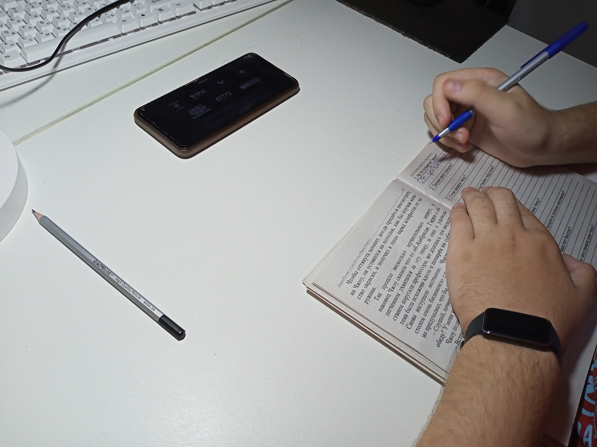 И вот сегодня, читает, выполняет задание по тексту и слушает музыку.