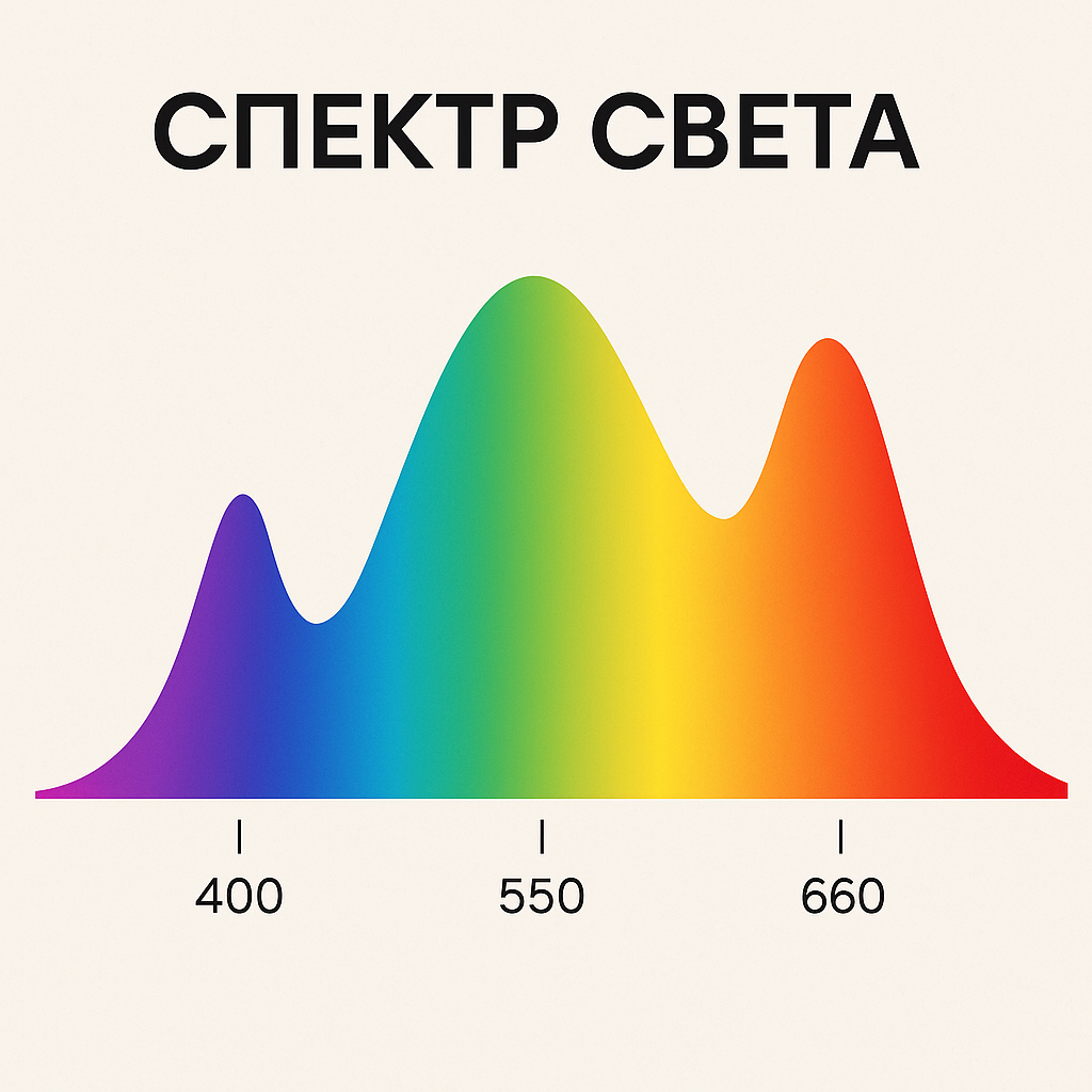 То, как именно смешиваются длины волн — называется спектральная композиция, и у каждой задачи (рассада, цветение, декоративность) она своя.