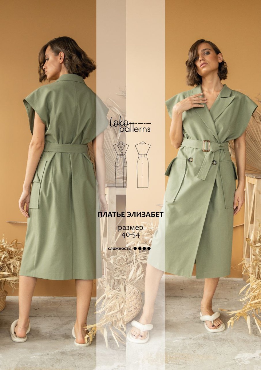Выкройка платья сафари «Элизабет». Это платье можно носить с водолазкой или футболкой «Сиэтл»🔥. Также можно сделать укороченный вариант и сочетать его с юбкой. Благодаря глубокой пройме, будет удобно носить жилет или платье-пиджак с водолазками. Платье приталенного силуэта, заужено книзу в стиле «сафари». Двубортная застёжка на пуговицы, отложные лацканы и воротник пиджачного покроя. Спущенное плечо, углублённая пройма. Широкий пояс на пряжке на талии. Накладные карманы с цельновыкроенными клапанами. Отделочные строчки по краям бортов, воротника, пройм, карманов и пояса. Прибавки к ОГ: 8 см. Прибавки к ОБ: 6 см. Для пошива рекомендуем использовать натуральные ткани:;лён, сатин, деним, хлопок, замша, кожа, холщовая. Выкройка дана на рост 170. Расход ткани: при ширине 150 см — от 1,2 до 2,6 м. В модели нет сложных элементов и молний, но много отделочных строчек. Самый сложный элемент — лацканы. Для заказа переходи по ссылке lokopatterns.ru/product/el... lokopatterns.ru/product/e