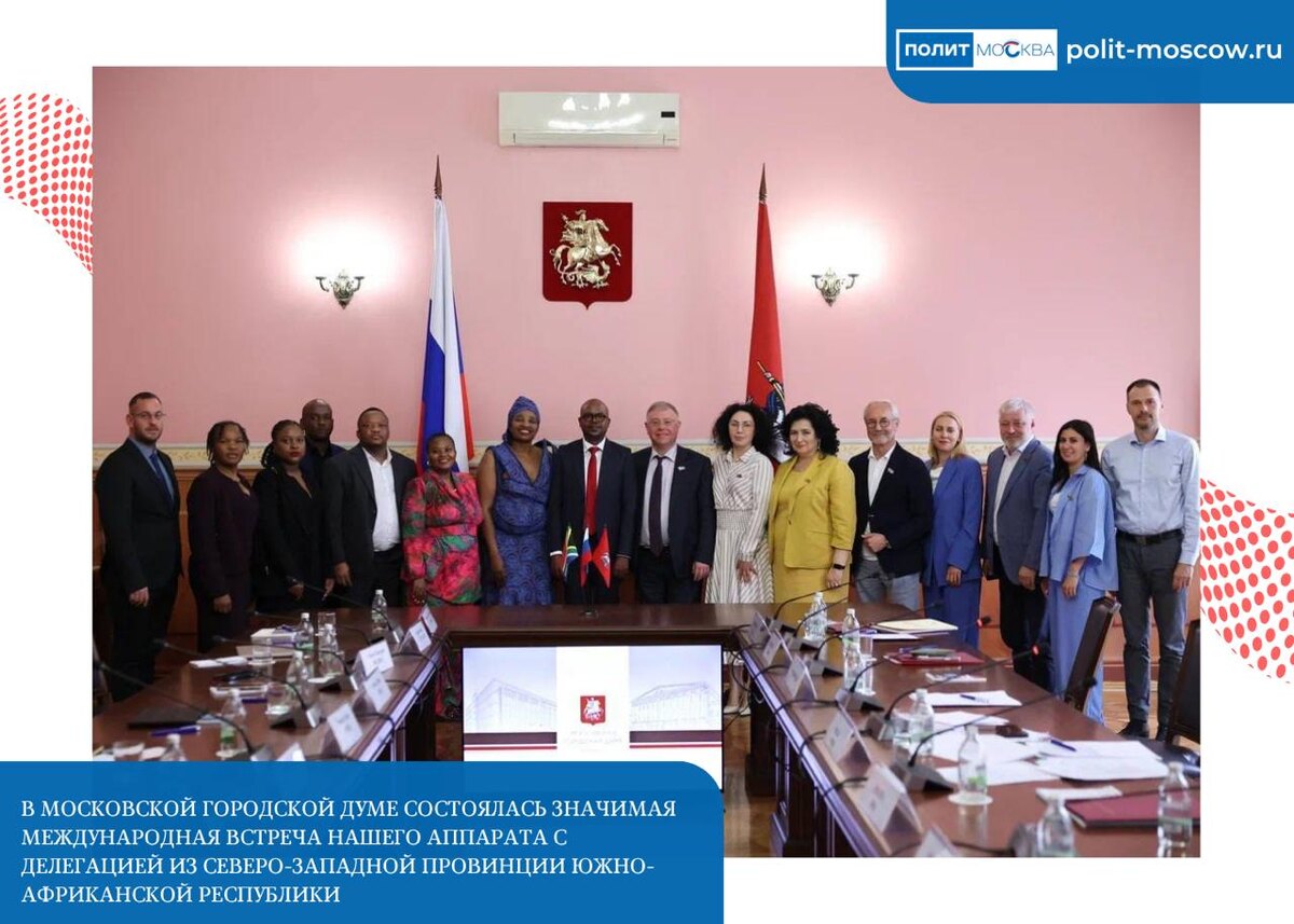 🐎В Московской городской Думе состоялась значимая международная встреча нашего аппарата с делегацией из Северо-Западной провинции Южно-Африканской Республики 🏛В работе участвовали депутаты МГД, представители Департамента внешнеэкономических и международных связей Москвы, сотрудники УМСиП и Дирекции Международного Муниципального Форума БРИКС. Среди выступавших — и.о. руководителя ДВМС Ольга Жилина и заместитель спикера Законодательного Собрания провинции Мэйн Моконэ Коллен. ⭐️Основными темами обсуждения стали перспективы сотрудничества в сферах транспорта, здравоохранения, культуры, спорта, предпринимательства, экологии и образования. ✅Как председатель профильной комиссии Мосгордумы и советник заместителя Мэра Москвы по транспорту и промышленности, я особо подчеркнула роль транспорта для жизни столицы. ⚡️Москва — один из ведущих мировых мегаполисов, активно внедряющий передовые транспортные решения. Это обеспечивает выcочайшее качество сервиса, удобство, скорость передвижения, безо