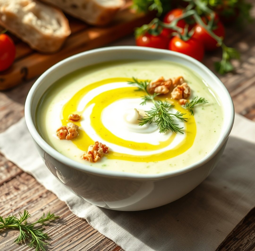 Таратор – это холодный суп, который особенно популярен в Болгарии, но его также любят в других балканских странах. Основу составляет **кисломолочный продукт** (обычно болгарский йогурт или разведенный кефир), свежие огурцы, чеснок, грецкие орехи и укроп. Иногда добавляют немного оливкового масла и лимонного сока для пикантности.