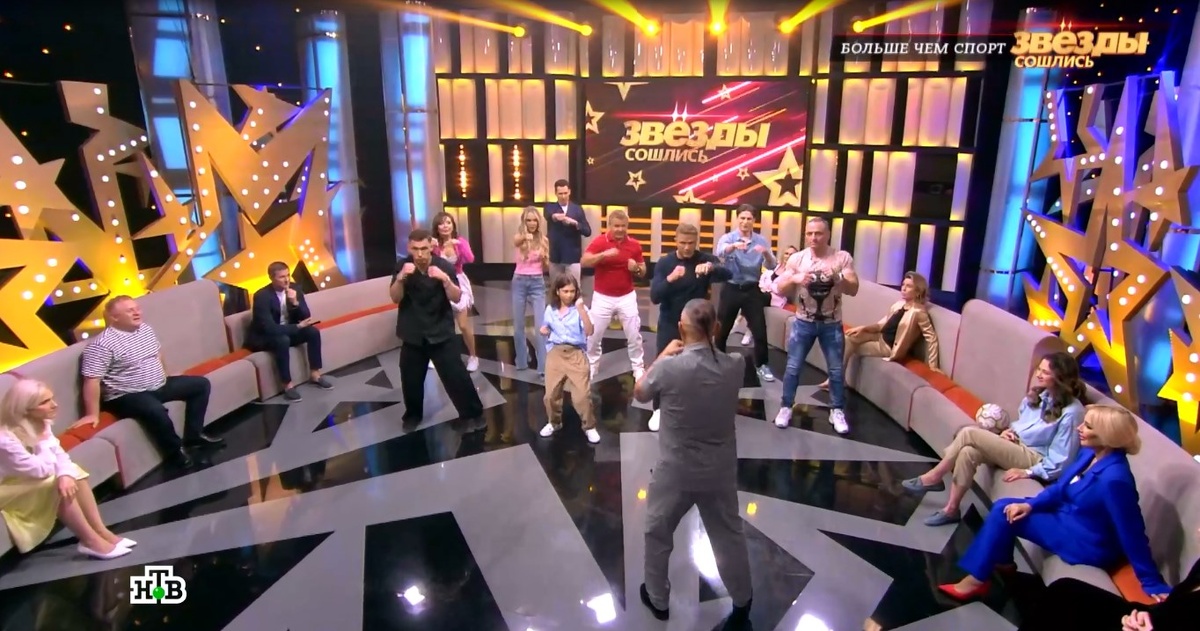 Бокс как фитнес: Костя Цзю устроил экспресс-тренировку для гостей программы «Звёзды сошлись», чтобы помочь им подготовиться к начавшемуся пляжному сезону.