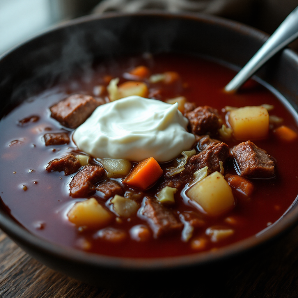 Борщ с Дымком и Прохладой Сметаны Представьте: за окном, допустим, легкий осенний дождик стучит по стеклу, или весенний ветерок пытается просочиться в форточку. А на кухне – царство ароматов, теплое и уютное. Сегодня мы варим не просто борщ, а Борщ. С большой буквы. С копчеными ребрышками, которые обещают глубину, и с обязательной, прохладной ложечкой сметаны в самом конце. Поехали? Собираем "Оркестр": Копченые ребрышки (свиные или говяжьи): Где-то 300-400 грамм. Наши "солисты". Они уже пропели свою дымную песню в коптильне, теперь пора делиться ею с бульоном. Промываем холодной водой. Свекла: Одна крупная, бордовая красавица. Она – душа борща. Моем, чистим. Картофель: 3-4 средних крепыша. Наш надежный "бас". Чистим, режем кубиками или брусочками. Капуста белокочанная: Четвертинка небольшого кочана или 200-250 гр. Свежая, хрустящая. Шинкуем не слишком тонко, но и не грубо. Морковь: Одна сочная. Трем на крупной терке или режем мелким кубиком. Лук репчатый: Одна средняя головка. Наш "дир