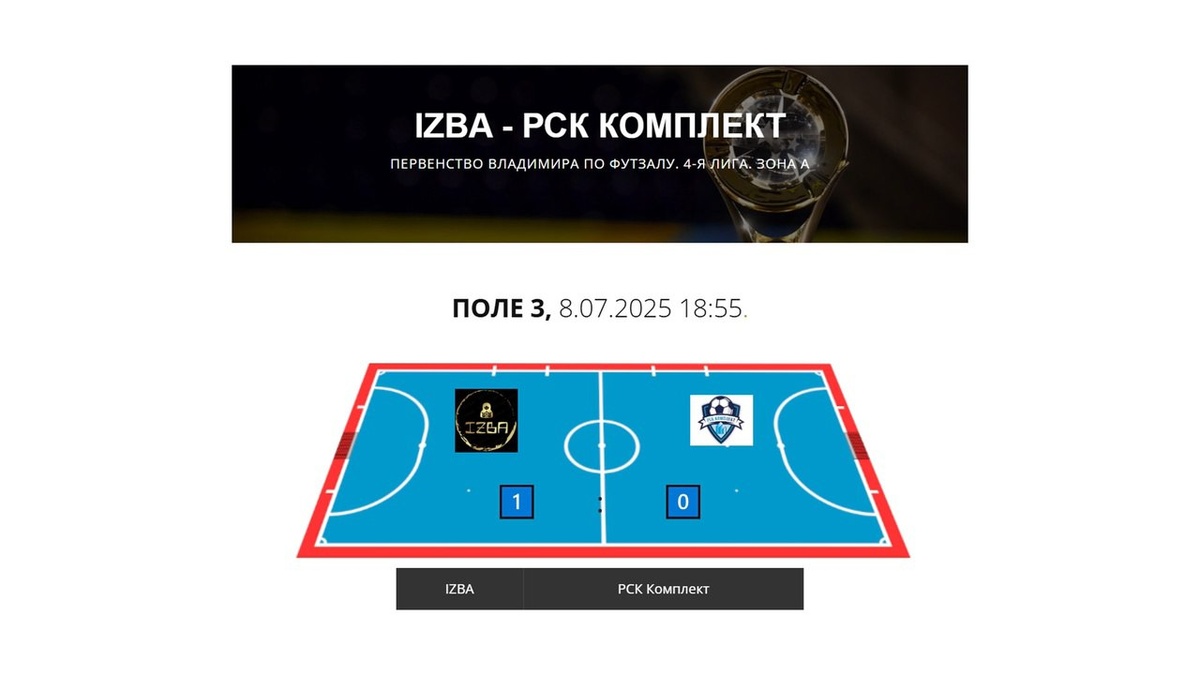 Первенство Владимира по футзалу. 4-я лига. Зона А. 08.07.2025 г. IZBA - РСК Комплект 1:0 (0:0) Обзор
