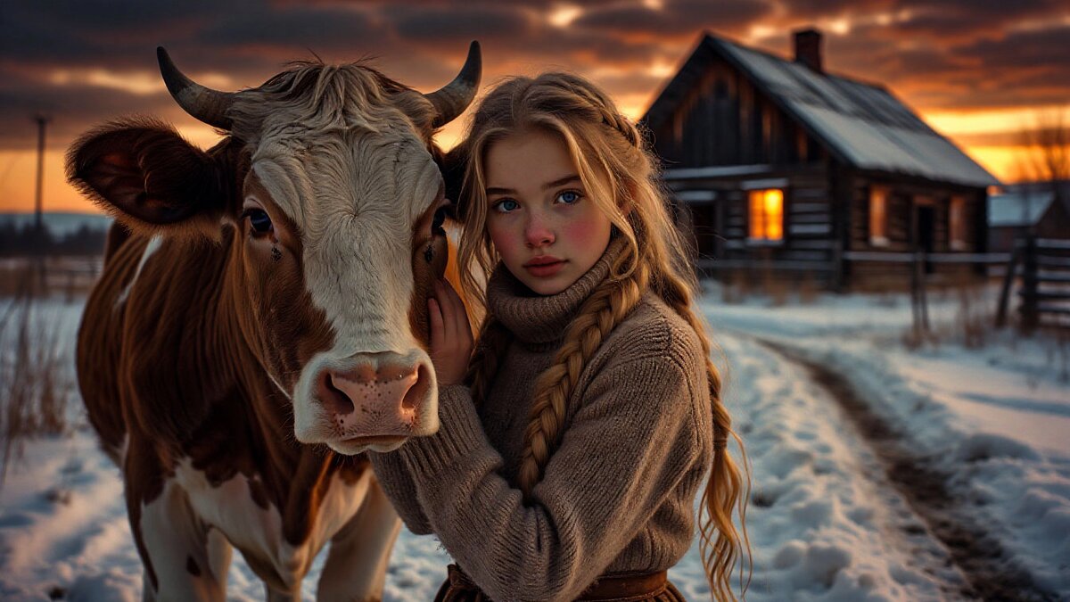 В ту ночь, когда в хлеву трещал мороз, а сердце девочки догорало от голода, страха и одиночества, простая корова легла рядом и отдала ей последнее тепло.