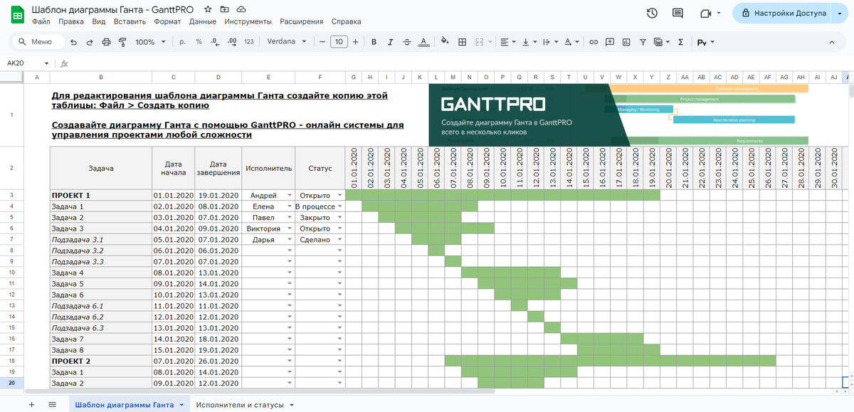 Готовые шаблоны и инструменты для создания диаграммы Ганта