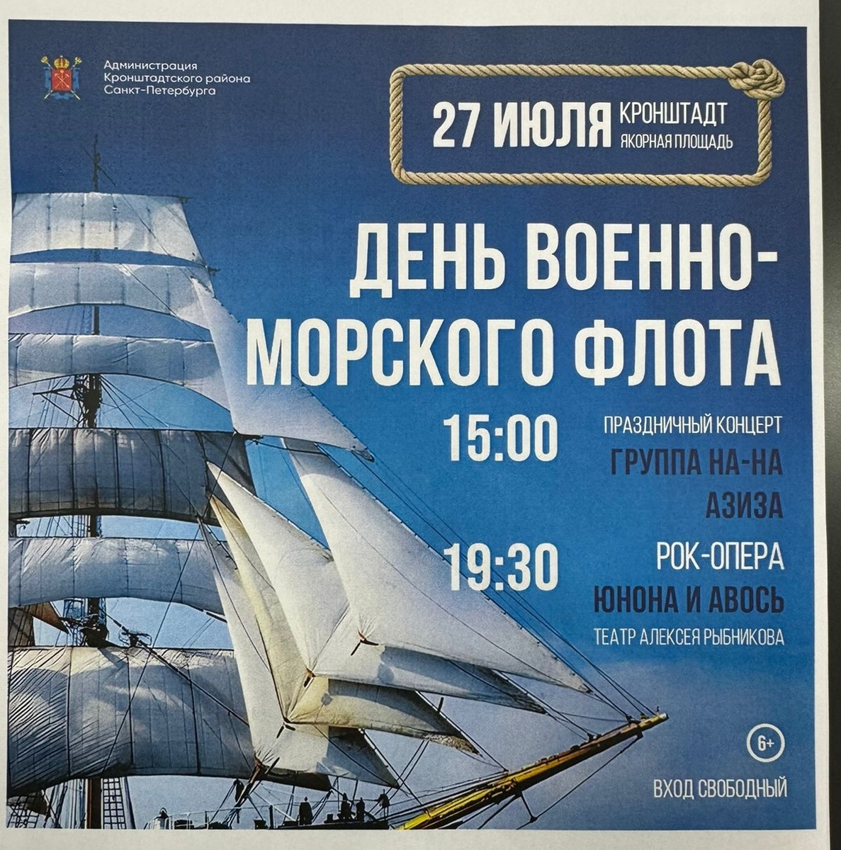 ДЕНЬ ВМФ вКРОНШТАДТЕ 27.07.2025 г. В преддверии Дня Военно-Морского Флота, Кронштадт готовится принять тысячи гостей на Якорной площади, где развернется грандиозное праздничное представление, посвященное славной истории и современной мощи российского флота. 27 июля станет днем, наполненным патриотизмом, гордостью и яркими эмоциями. Кульминацией торжества станет выступление звезд российской эстрады. Легендарная Азиза, чьи песни покорили сердца миллионов, подарит зрителям незабываемые музыкальные моменты. Ее неповторимый голос и артистизм создадут атмосферу праздника и единения. А группа "На-На", символ эпохи 90-х, зажжет публику своими хитами, которые до сих пор звучат свежо и энергично. Их зажигательные танцы и драйв никого не оставят равнодушным, заставив подпевать и двигаться в такт музыке. Помимо музыкальной программы, гостей праздника ждет насыщенная развлекательная программа, включающая в себя военно-морской парад, показательные выступления морских пехотинцев, выставку военной те