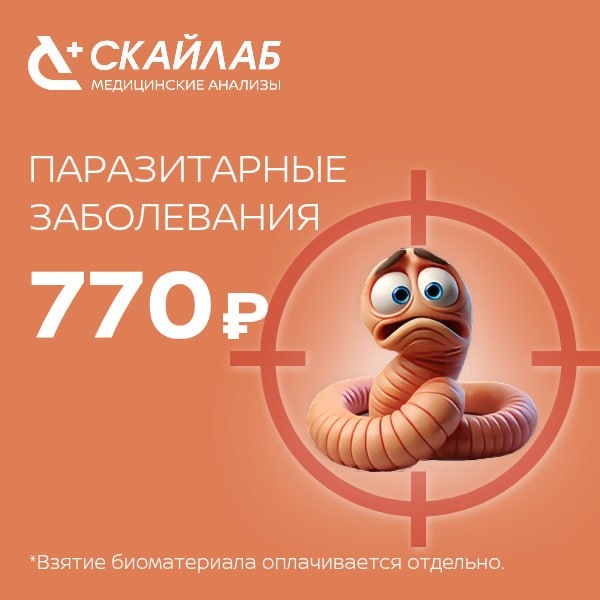 🎯 Комплекс ПАРАЗИТАРНЫЕ ЗАБОЛЕВАНИЯ – 7 анализов за 770 ₽ Вы уверены, что в вашем организме нет непрошенных "гостей"? Паразиты могут жить годами, маскируясь под другие болезни! 🔍 Профиль включает 7 ключевых анализов, которые выявляют антитела к самым распространенным паразитам: * Лямблии * Описторхи * Эхинококки * Токсокары * Трихинеллы * Аскариды * Токсоплазма гондии ❤️ Всего 770 ₽ вместо 1 540 ₽! 🤓 Тревожные симптомы при паразитарных заболеваниях: - Зуд кожи и аллергия - Слабость и головные боли - Проблемы с ЖКТ (вздутие, диарея) - Потеря веса без причины Помните: 80% заражений протекают бессимптомно! Не дайте паразитам шанса – проверьтесь сейчас! *Взятие биоматериала оплачивается отдельно. Акция действует до 31 июля 2025 года. 🔬 Медицинская лаборатория СКАЙЛАБ 📞 +7 (800) 550-56-06 💻 www.skylabkdl.ru #СКАЙЛАБ #Лаборатория #Здоровье #Акция #Скидки