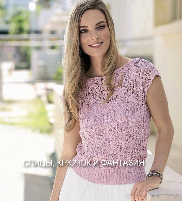 Пряжа (55% шелка, 45% хлопка; 120 м/25 г) – 150 (175) г светло-розовой; спицы № 2,5 и 3,5; крючок № 2,5.