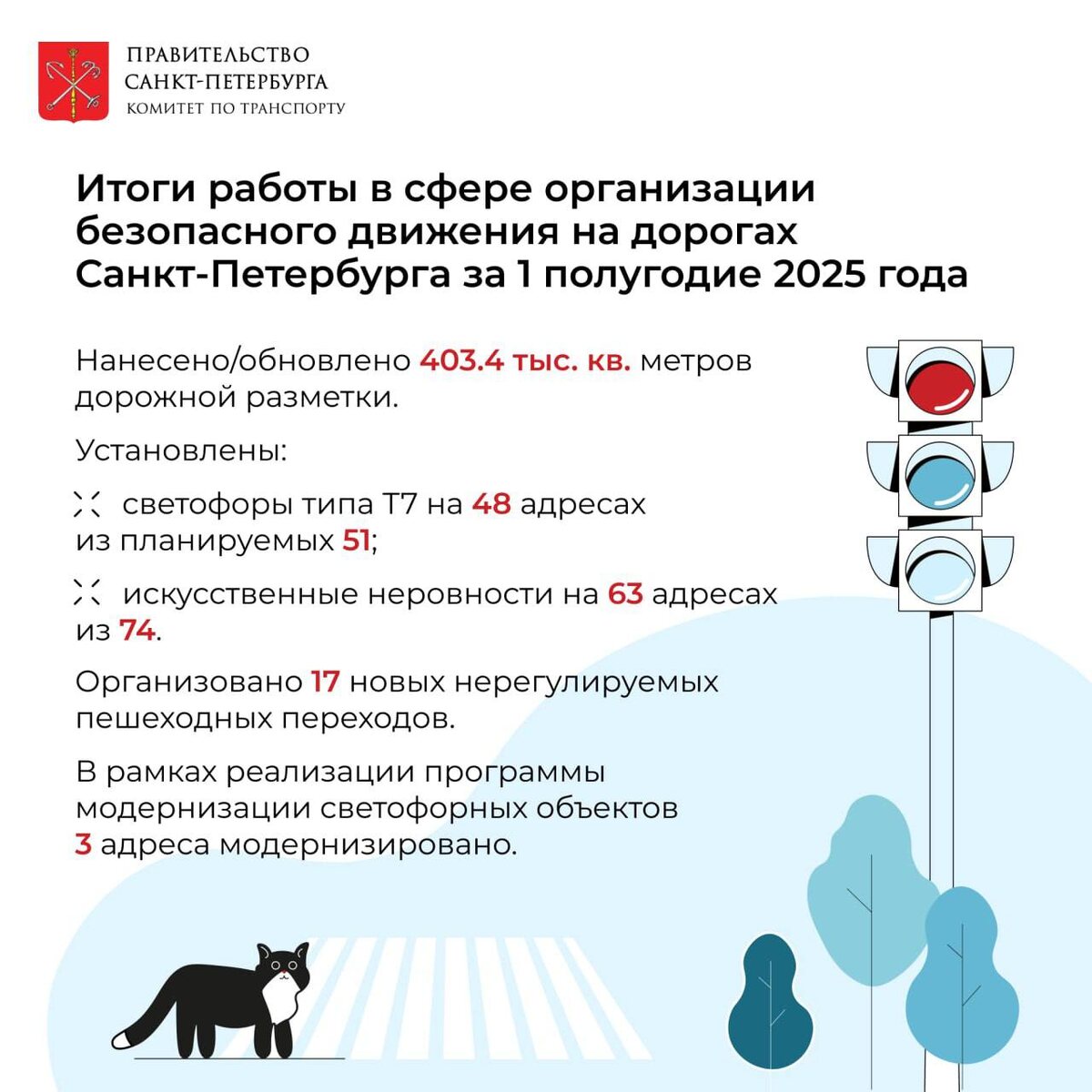 🚦 Безопасность на дорогах Петербурга: итоги полугодия 2025 В Санкт-Петербурге активно работают над тем, чтобы дороги стали безопаснее для всех. За полгода установили новые светофоры и лежачих полицейских, чтобы регулировать движение и снизить риск аварий. Ещё добавили пешеходные переходы: теперь передвигаться по городу удобнее и безопаснее. Для людей с ограниченными возможностями делают комфортнее доступ к остановкам и переходам: например, занижают бордюры. Подробнее в карточках 👆 Фото: Telegram-канал Начальник транспортного цеха Петербургский дневник
