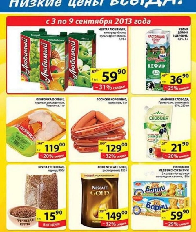 В соцсетях вирусится каталог с ценами на продукты в 2013 году. Золотые года, я помню❤️