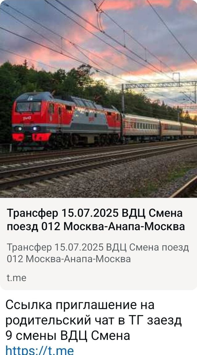 Всех, кого интересует вопрос как попасть в родительский чат по трансферу: 1. у вас в памятке написана вся информация по заезду и выезду. 2. Ссылку на присоединени к группе в ТГ направляют вам в вотсап за 3- 5 дней. 3. Чат на выезд сохраняется тот же. В чате на выезд пишут информацию за 1-2 дня до выезда из лагеря Но в любом случае, вся ВАЖНАЯ информация направляется Вам в памятках за 10 дней до заезда. Вопросы??