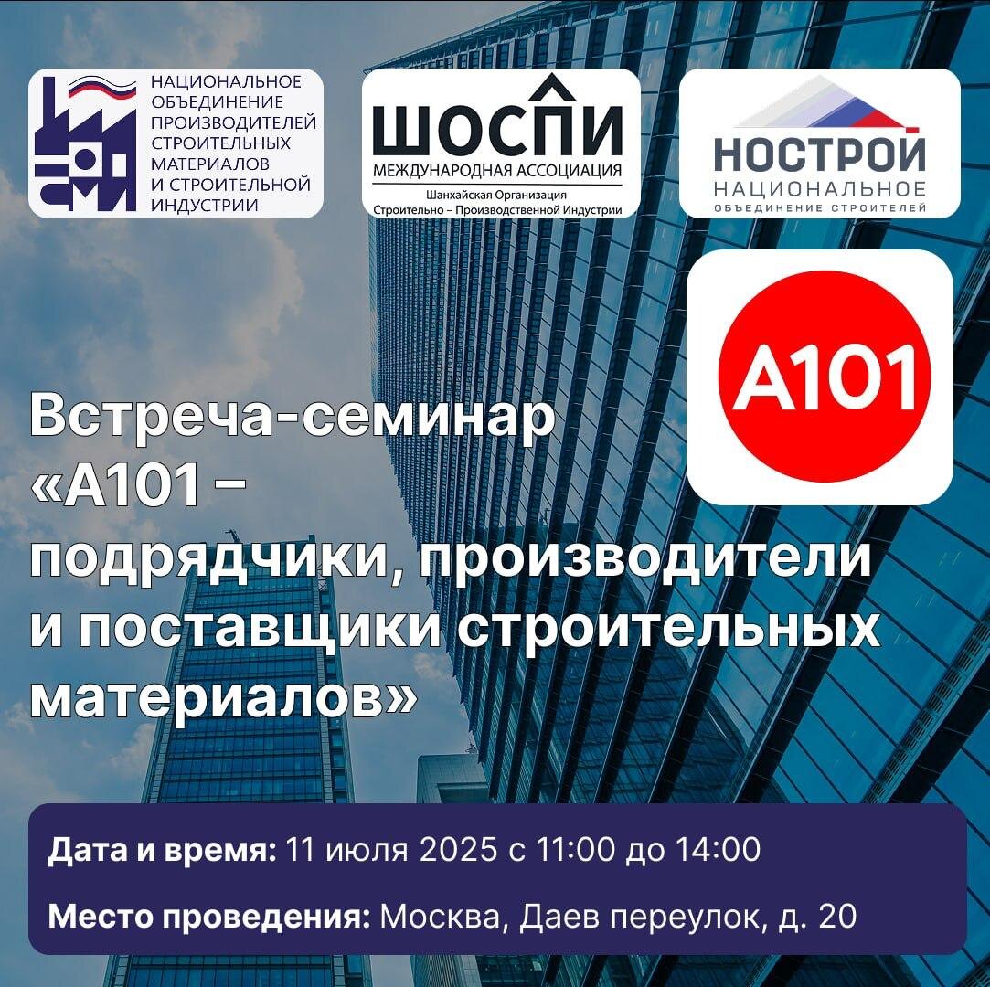 🪖 Встреча-семинар с ГК «А 101»: новые перспективы сотрудничества 11 июля в «Даев Плаза» (Москва) состоится открытая встреча-семинар для участников строительной отрасли с девелопером ГК «А101» — одним из крупнейших застройщиков Москвы и России (входит в состав ПФГ «Сафмар») 🔵В программе встречи: 🔵Презентация компании ГК «А101»; 🔵Обсуждение требований к поставщикам и подрядчикам при реализации проектов; 🔵Особенности закупочных процедур и критерии выбора партнеров; 🔵Возможность задать вопросы и получить ответы от представителей компании. 🔵 Время мероприятия: с 10:30 до 14:00. РЕГИСТРАЦИЯ на событие