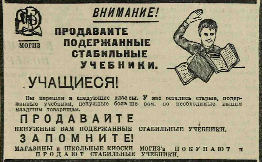 Рубрика "Старости". Газета "Вечерняя Москва", 5 сентября 1939 года. Интересно, как в разные годы происходила смена владельцев у школьных учебников. Перед войной их, оказывается, перепродавали. Ну и интересный термин - "стабильные". Видимо, имеется ввиду, что с хорошим переплётом и без выпадающих листов.