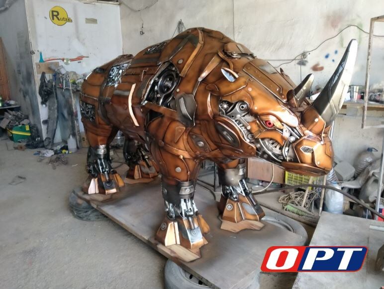 Оренбургские мастера Игорь Соловьев и Олег Самсонов создали в гараже металлического носорога.