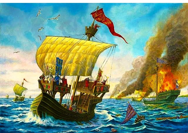 Именно флагман, которым сообща руководили Пьер де Барр и правитель «Туманного Альбиона», настиг «мусульманский Ямато». Погоня далась христианам нелегко. На море воцарился штиль, поэтому вся надежда обоих кораблей была связана с отлаженной, дружной, синхронной, бесперебойной и мощной работой гребцов.